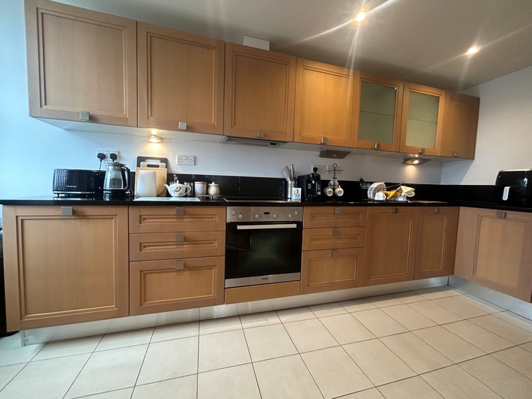 The separate kitchen is thoughtfully equipped for guests who enjoy self-catering. With stylish wooden cabinetry, practical worktops and tiled flooring, it offers all the essentials for relaxed holiday cooking, including:
